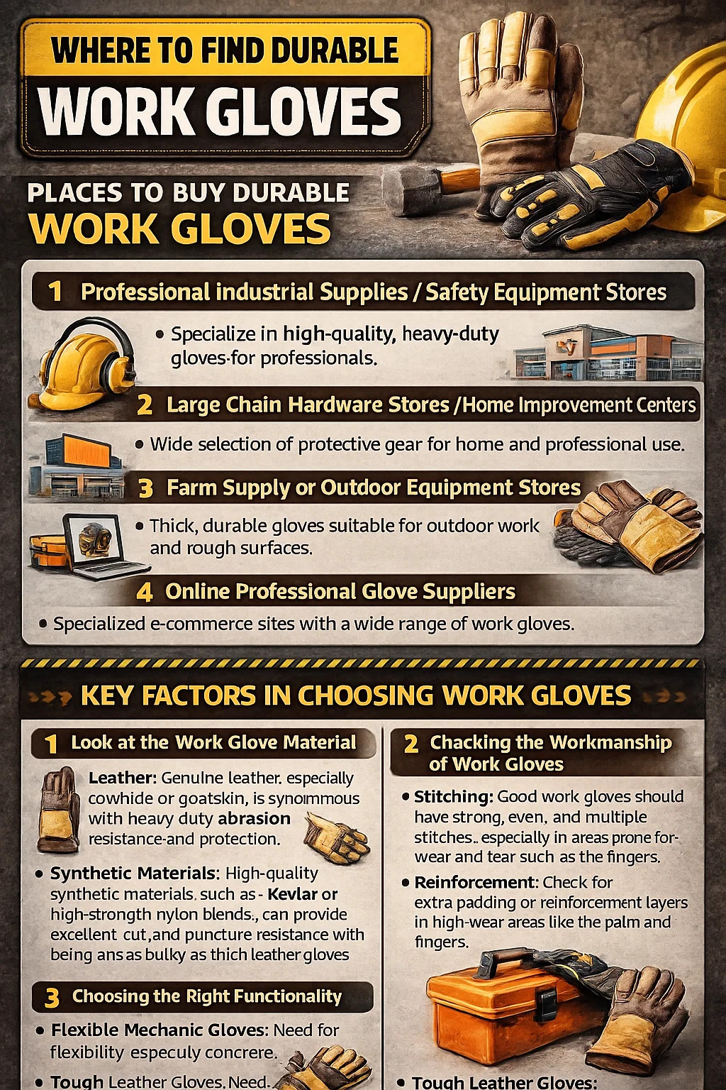 Wenn Sie Arbeitshandschuhe für grobe Arbeiten benötigen, wie z. B. den Umgang mit Holz, scharfen Werkzeugen oder Arbeiten im Freien, sollten Sie diese Orte in Betracht ziehen.